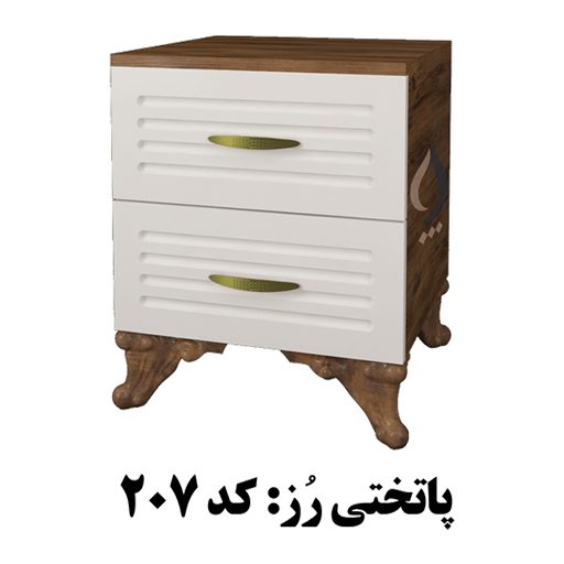 این محصول از جنس ملامینه و درب های آن وکیوم درجه یک و یراق خوب تولید می شود و پایه های آن تو پر است که شامل 2 کشو می باشد